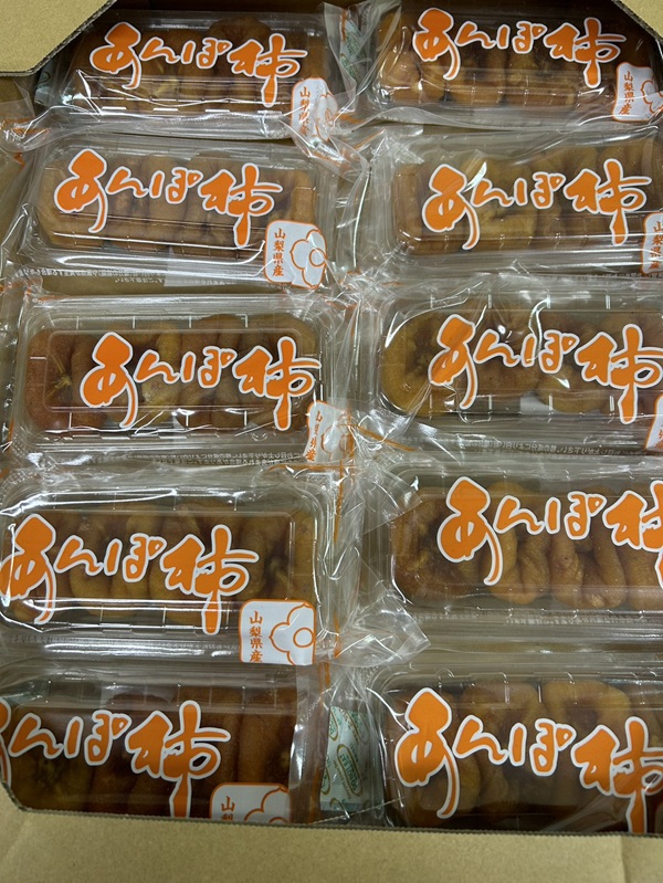 あんぽ柿は、鮮やかなオレンジ色の果肉とゼリー状のトロッとした食感が特徴です。